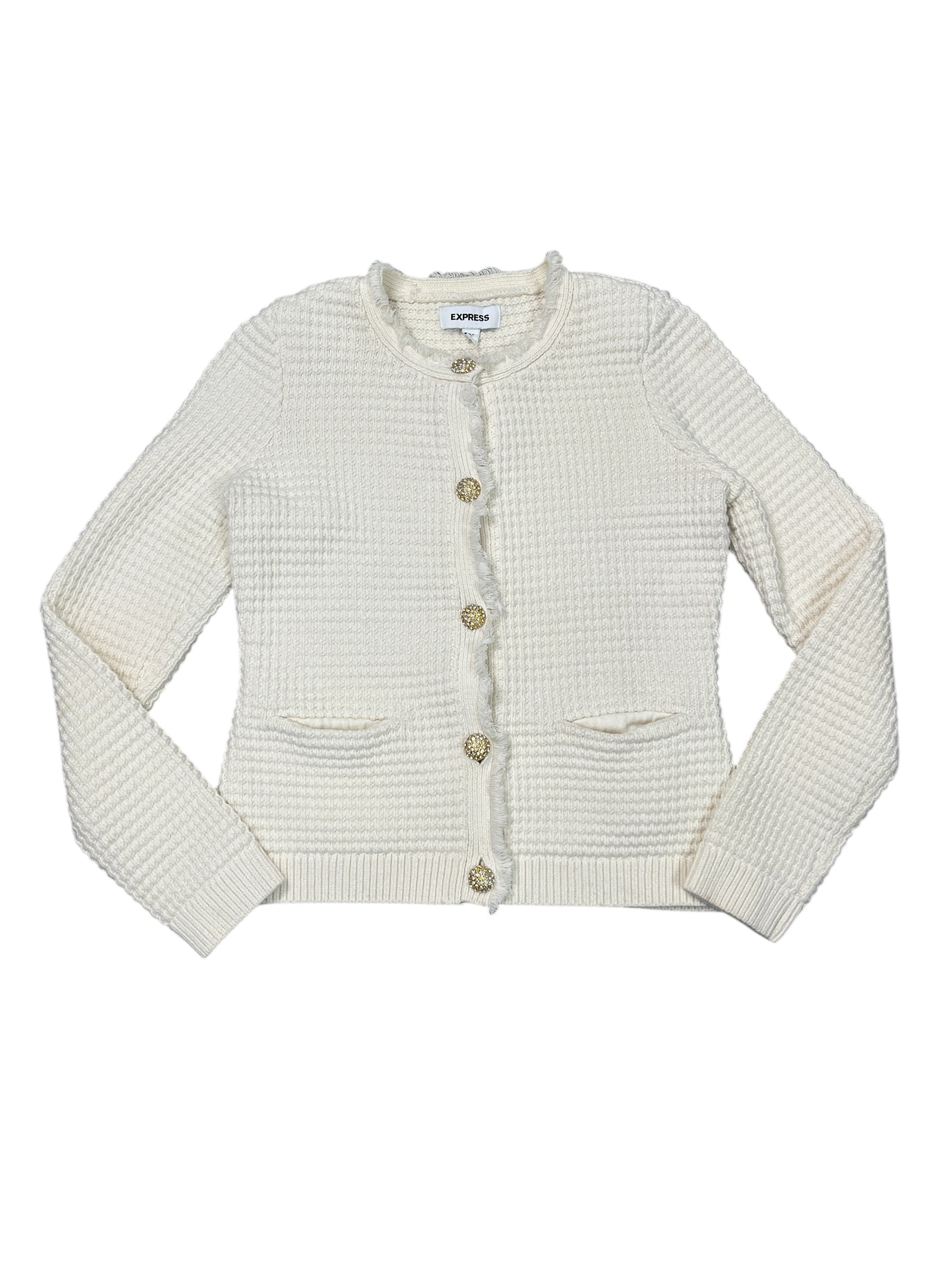 Chic cream Blazer by Express, size M, exudes sophistication with a modern twist for fashion enthusiasts.