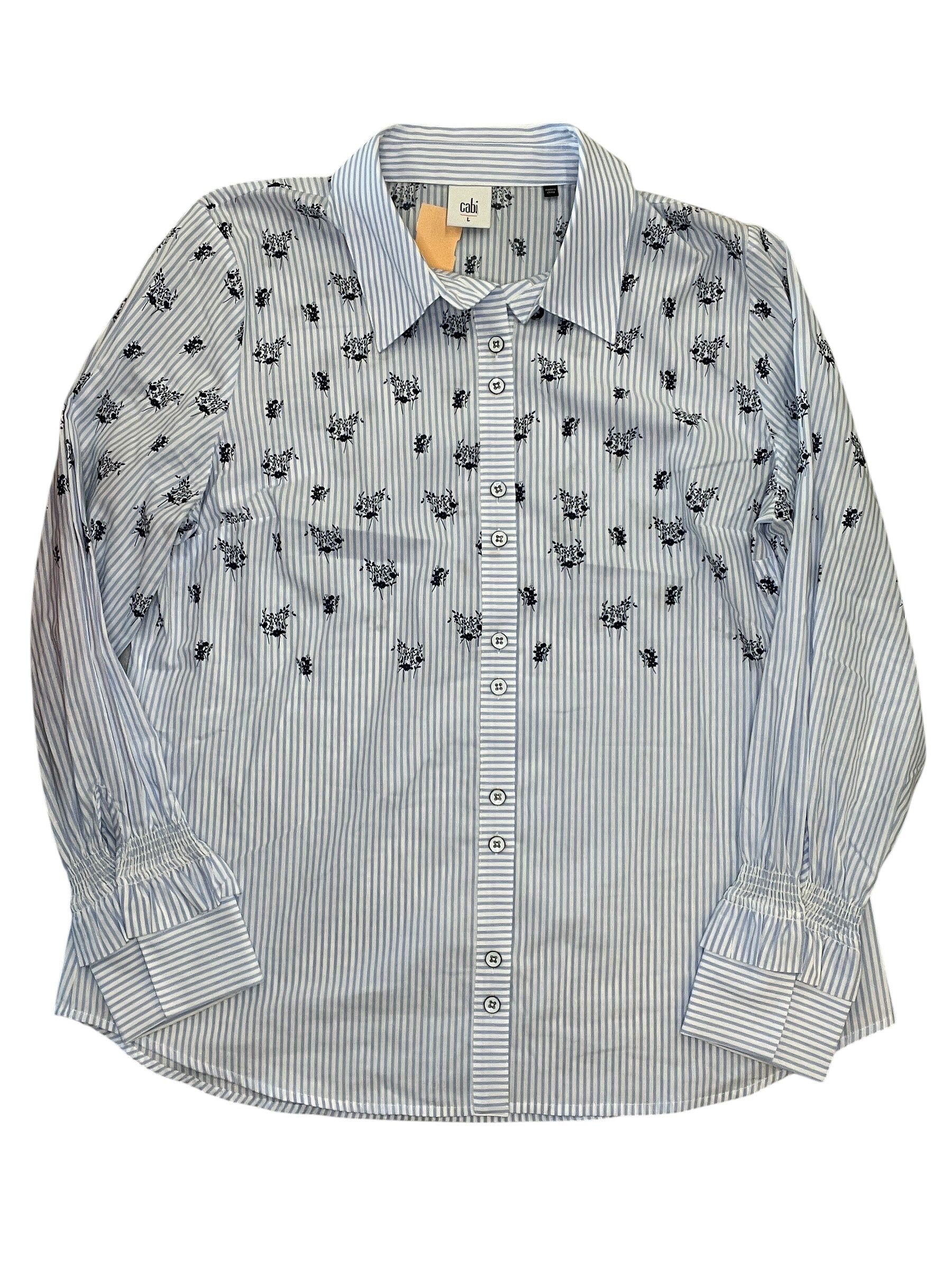 Blouse Ls By Cabi In Blue & White, Size:L