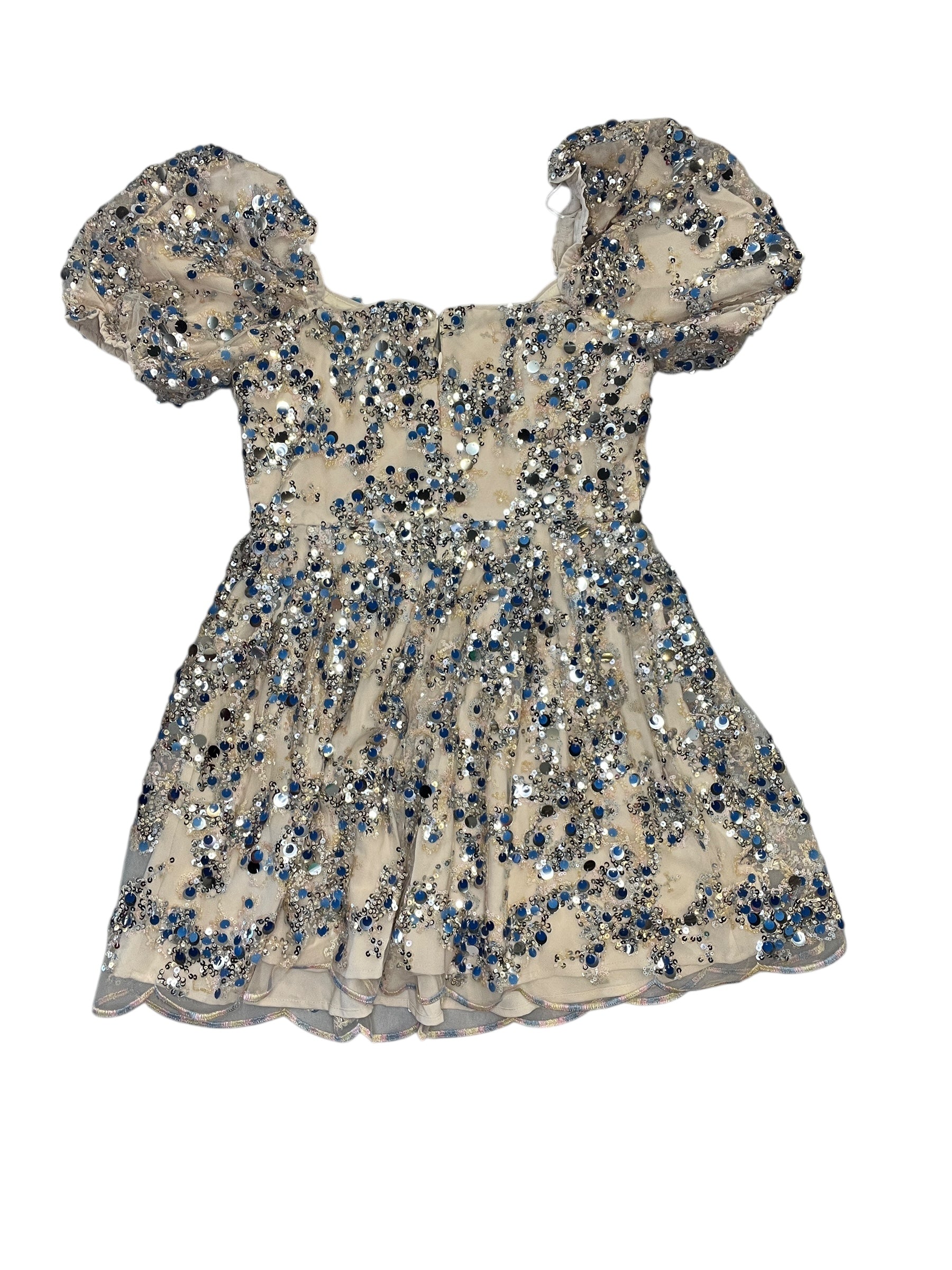 Shimmer and shine in this silver TCEC party dress, Size L. Stand out and sparkle at any event effortlessly!