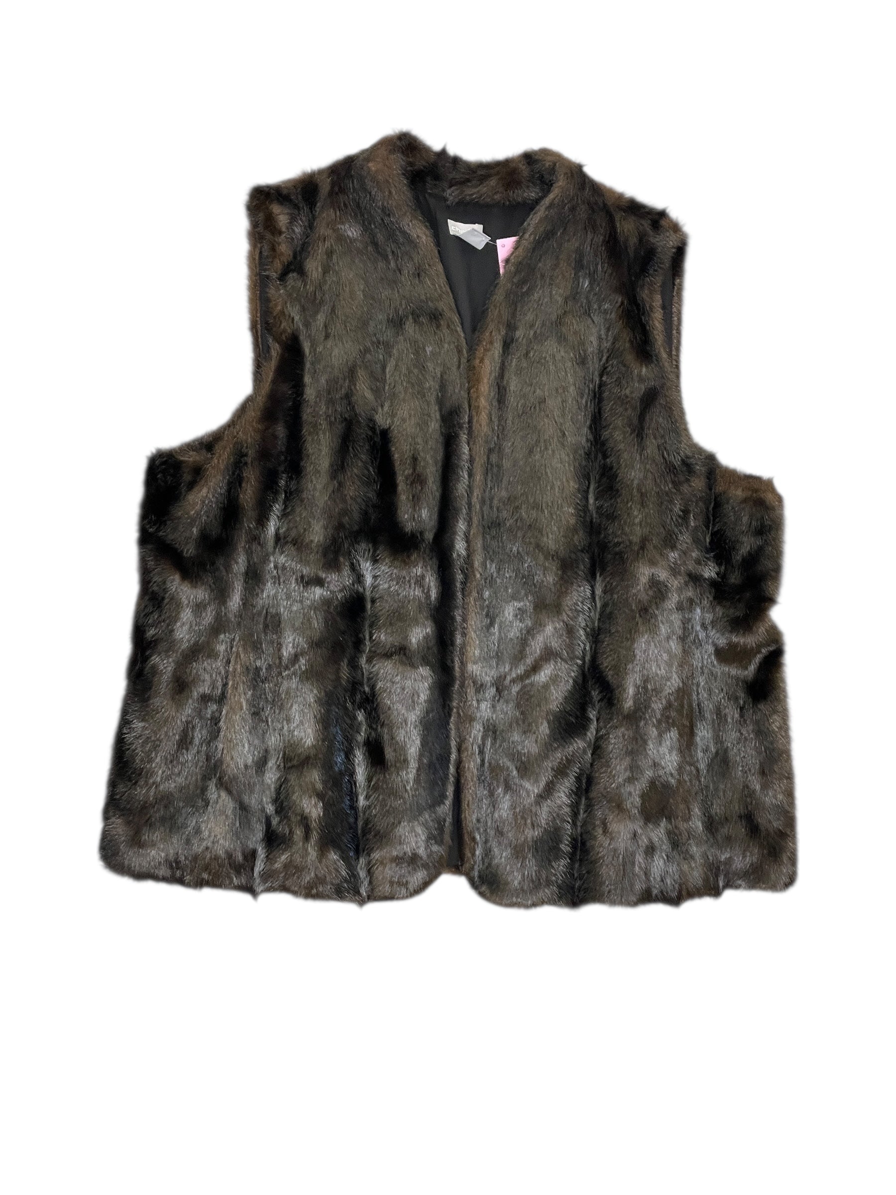 Vest Faux Fur & Sherpa By Chicos In Brown, Size:Xl